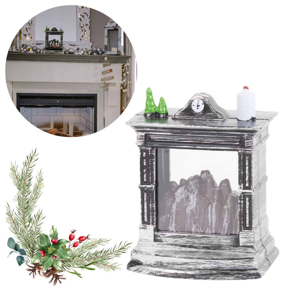 KOMINEK DEKORACJA ŚWIATECZNA Z RUCHOMYM PŁOMIENIEM LED MINI SREBRNY OZDOBA