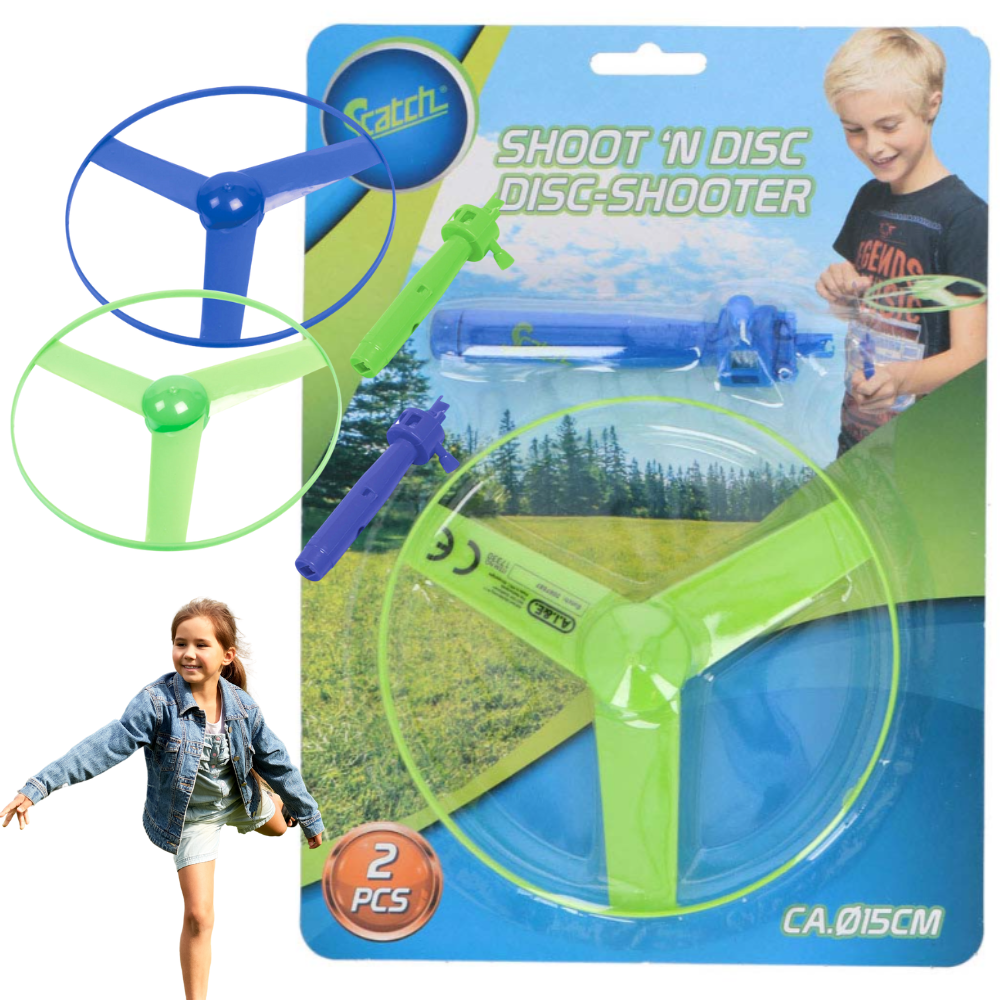 LATAJĄCY DYSK ZIELONY - NIEBIESKI PISTOLET ZABAWKA WYRZUTNIA INTERAKTYWNA