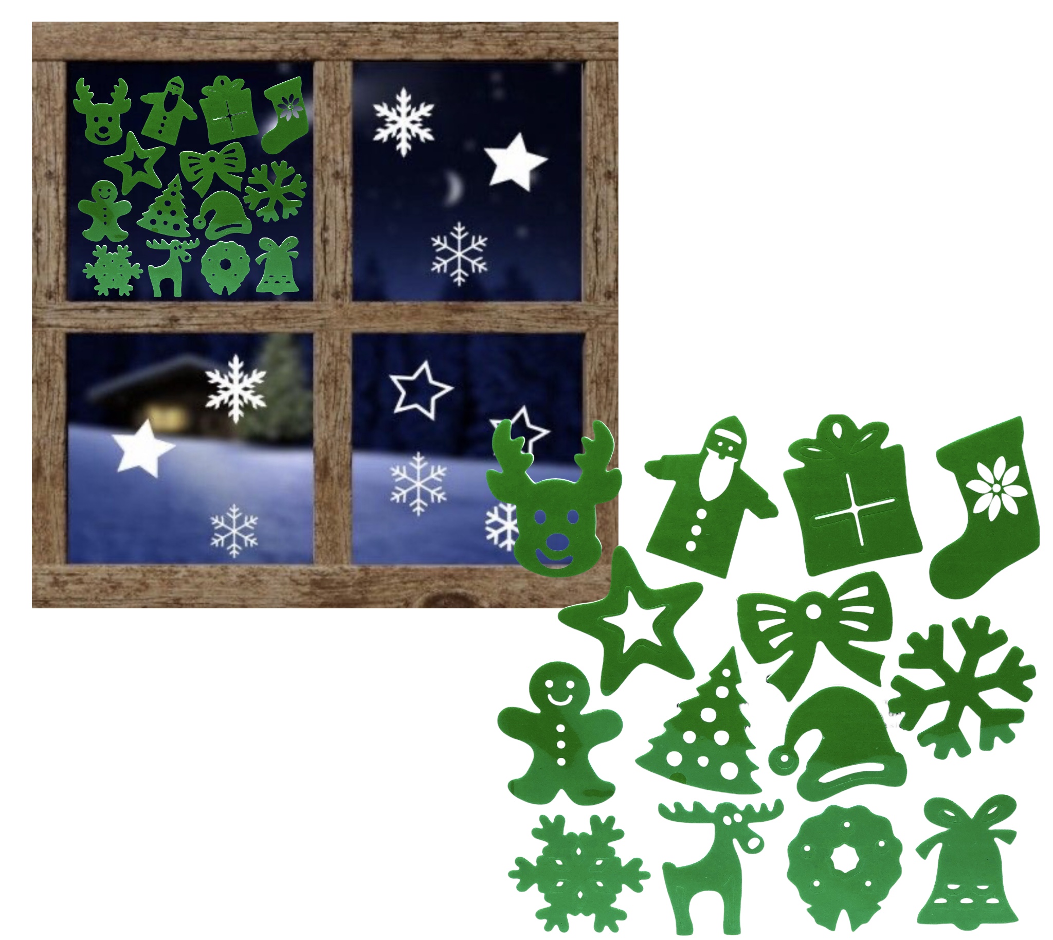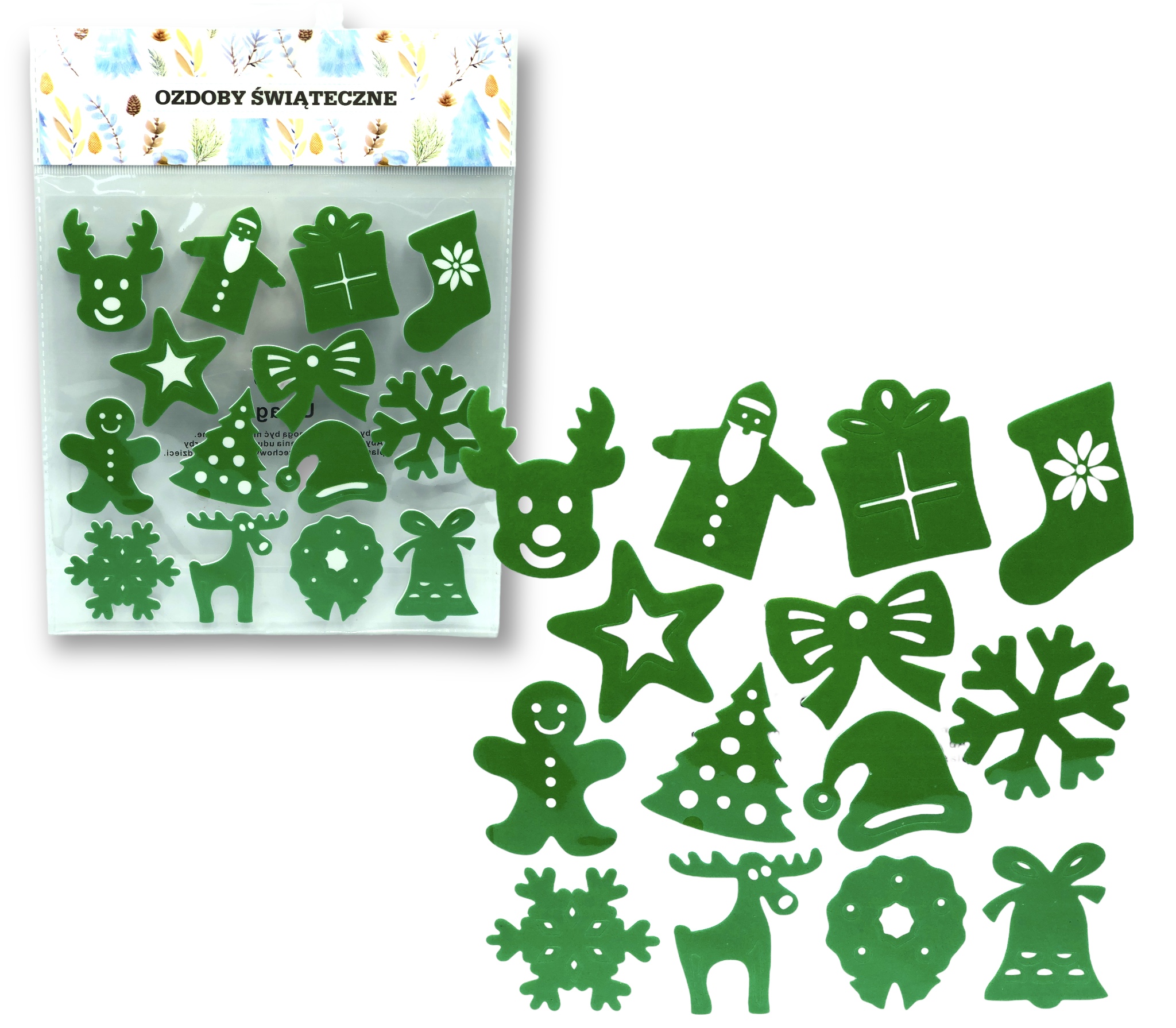 DEKORACJA ŚWIĄTECZNA NAKLEJKA OZDOBY ŚWIĄTECZNE NA OKNO ZIELONE NAKLEJKI