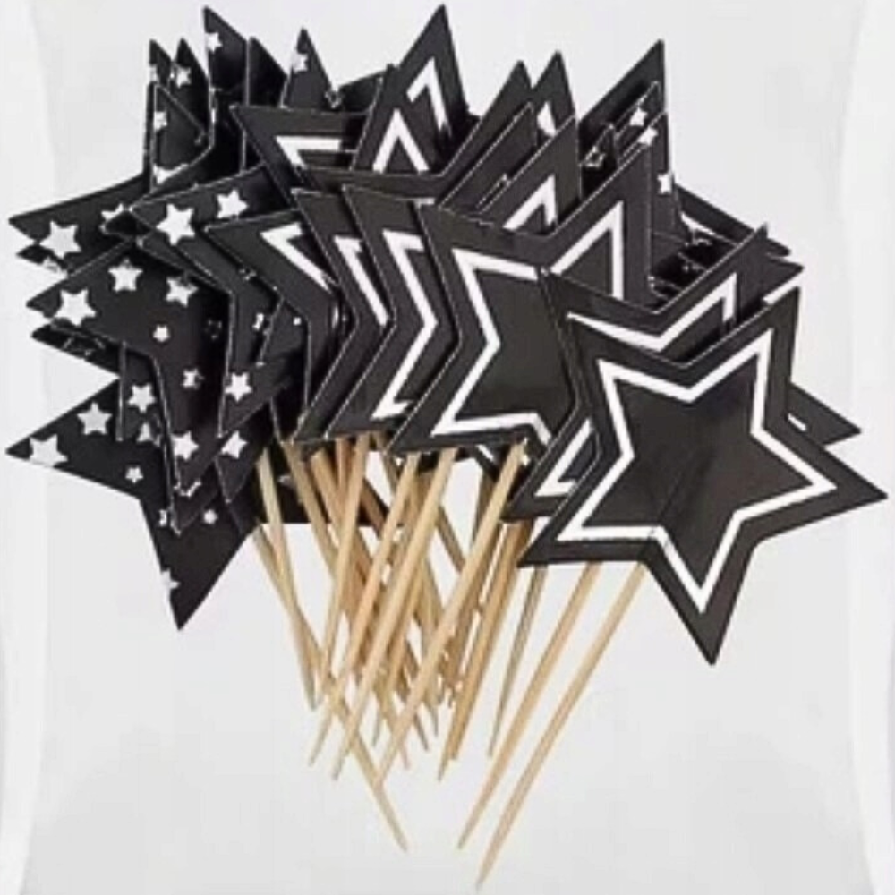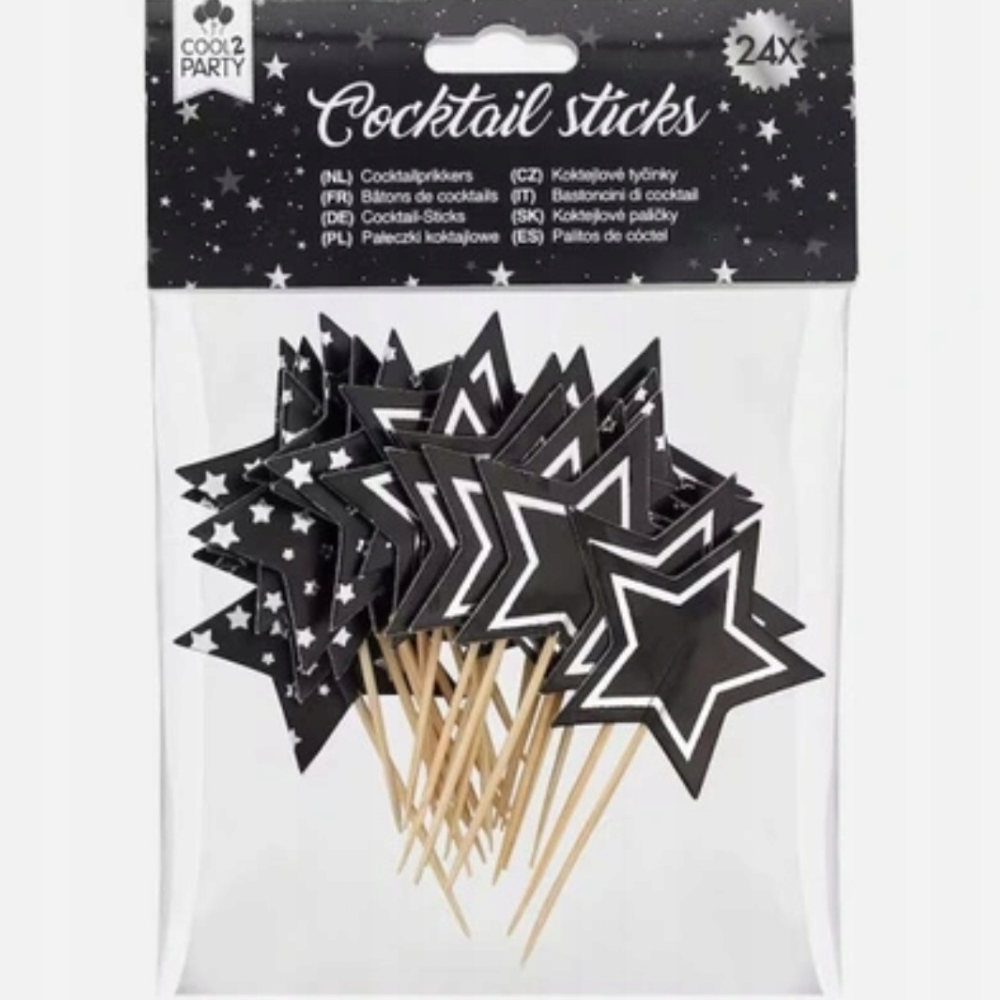 PATYCZKI KOKTAJLOWE NA IMPREZĘ 24 SZT. SREBRNE GWIAZDKI [19118]