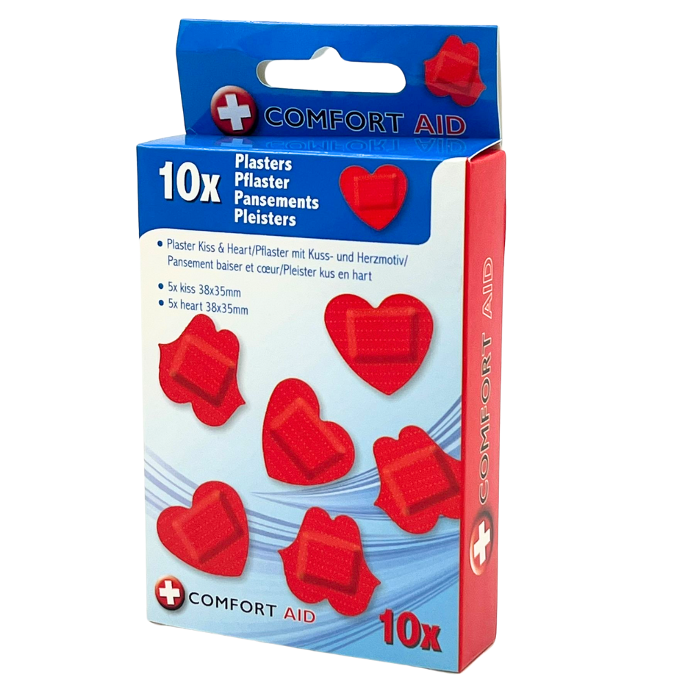 PLASTRY Z OPATRUNKIEM CZERWONE SERCA USTA 10SZT. DOMOWA APTECZKA ZDROWIE