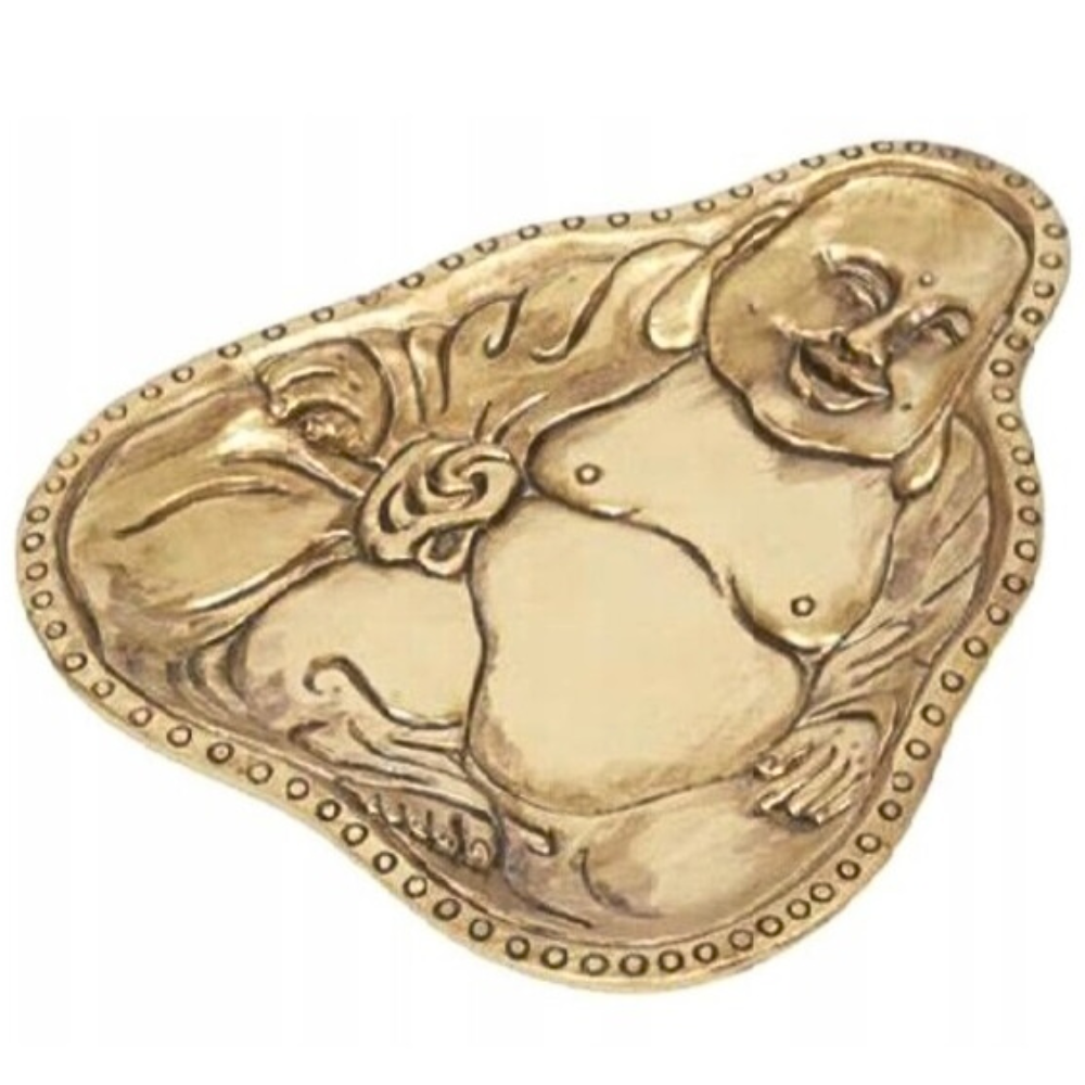 TACKA DEKORACYJNA W KSZTAŁCIE BUDDY PODSTAWKA TACA OZDOBNA 15X17CM ZŁOTA