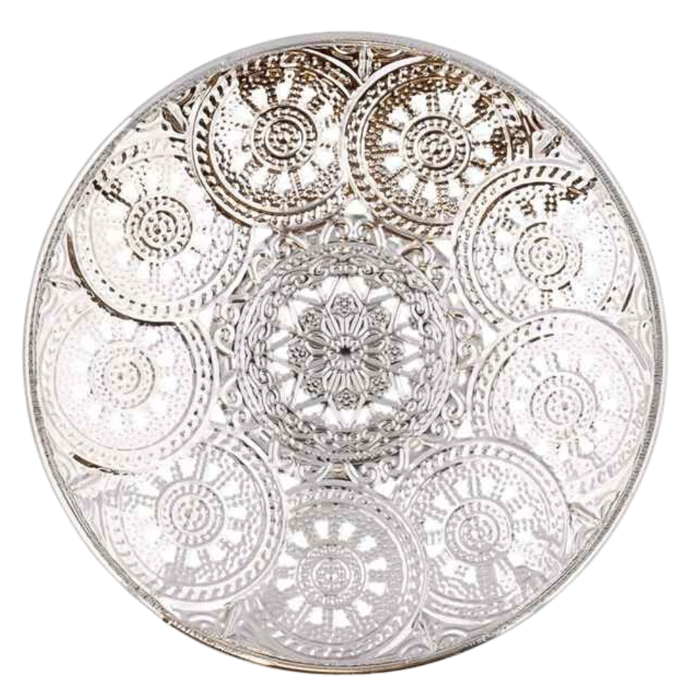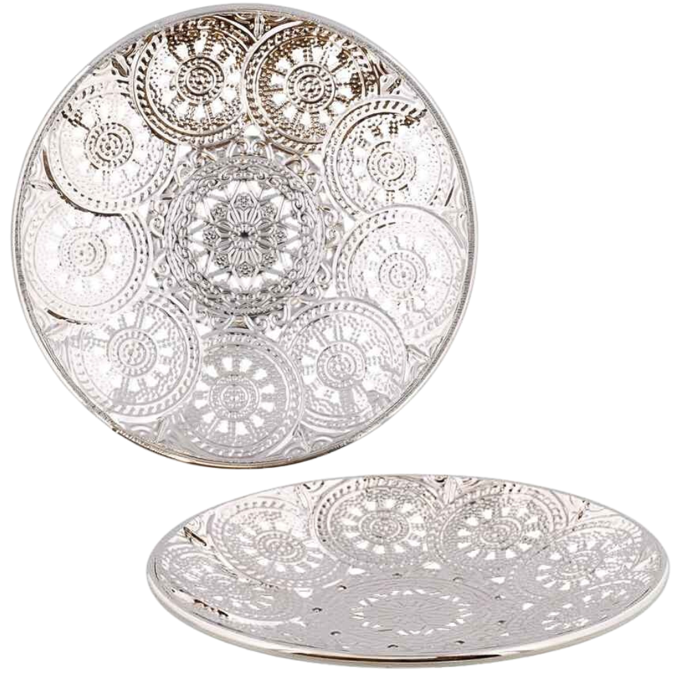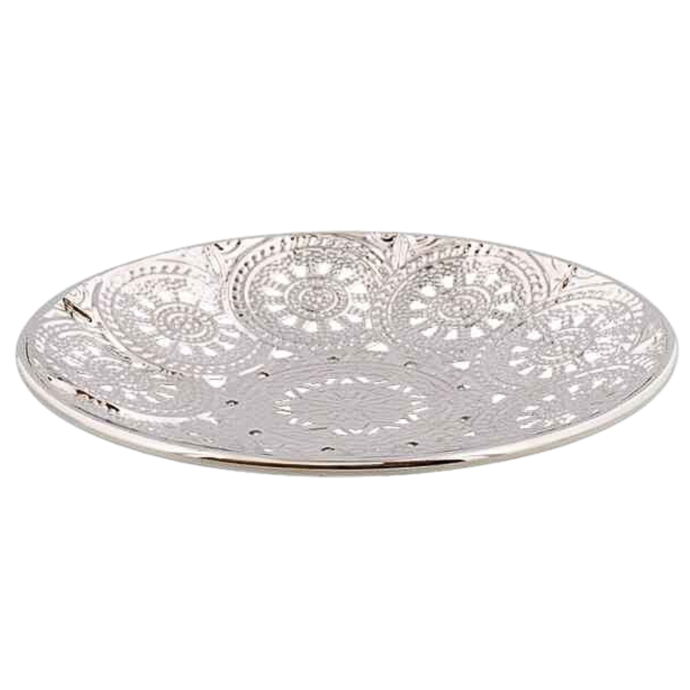 SREBRNY DEKORACYJNY TALERZYK POD SZKLANKĘ 13CM AŻUROWY -[15886]