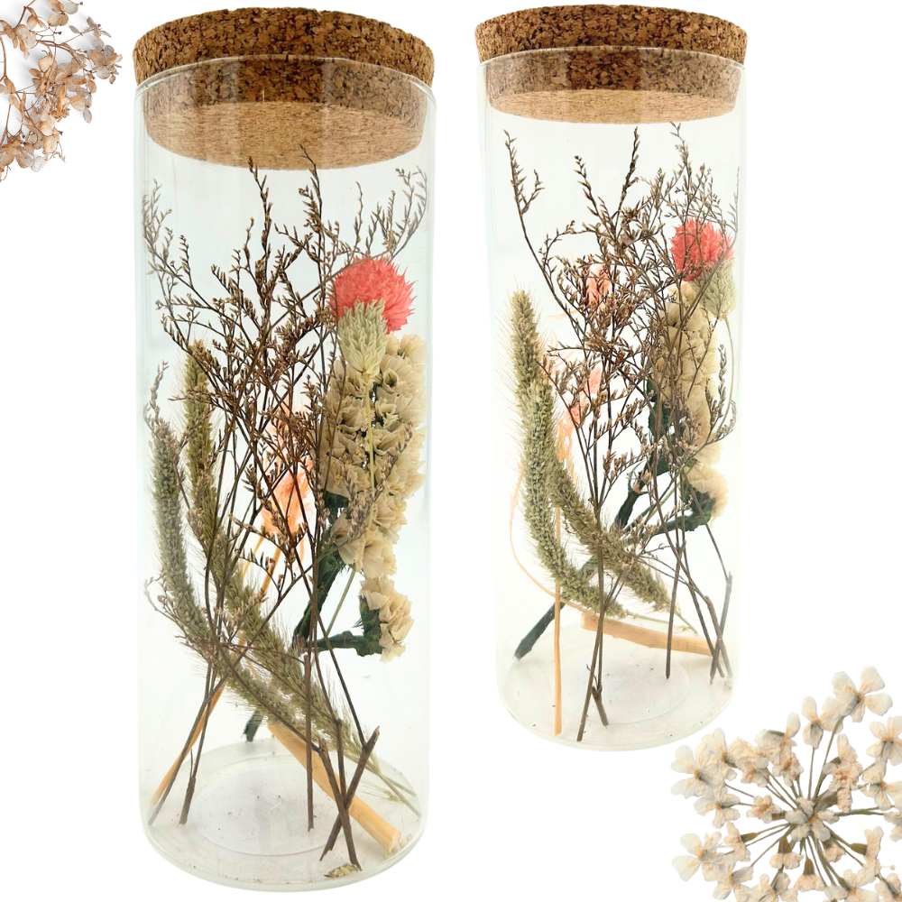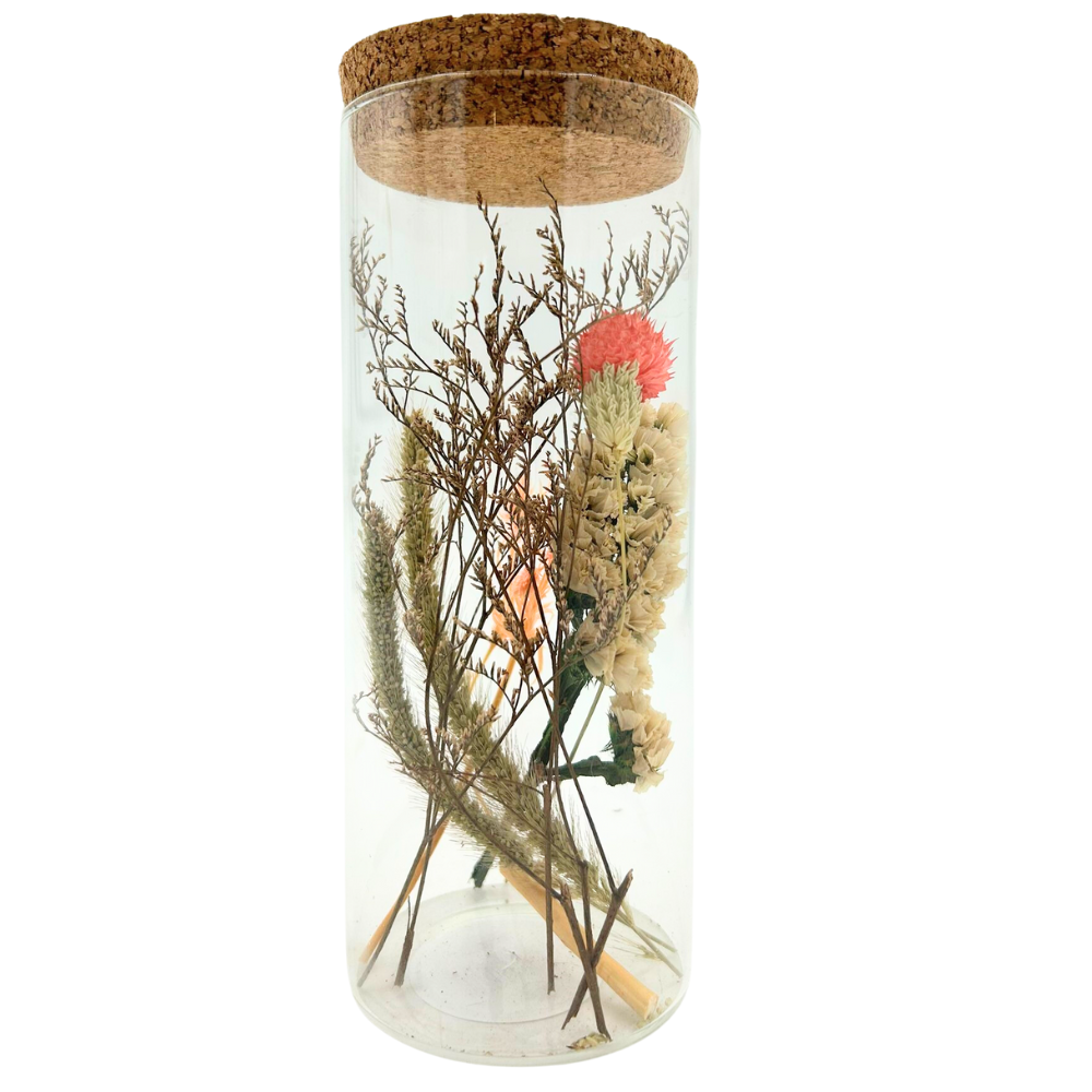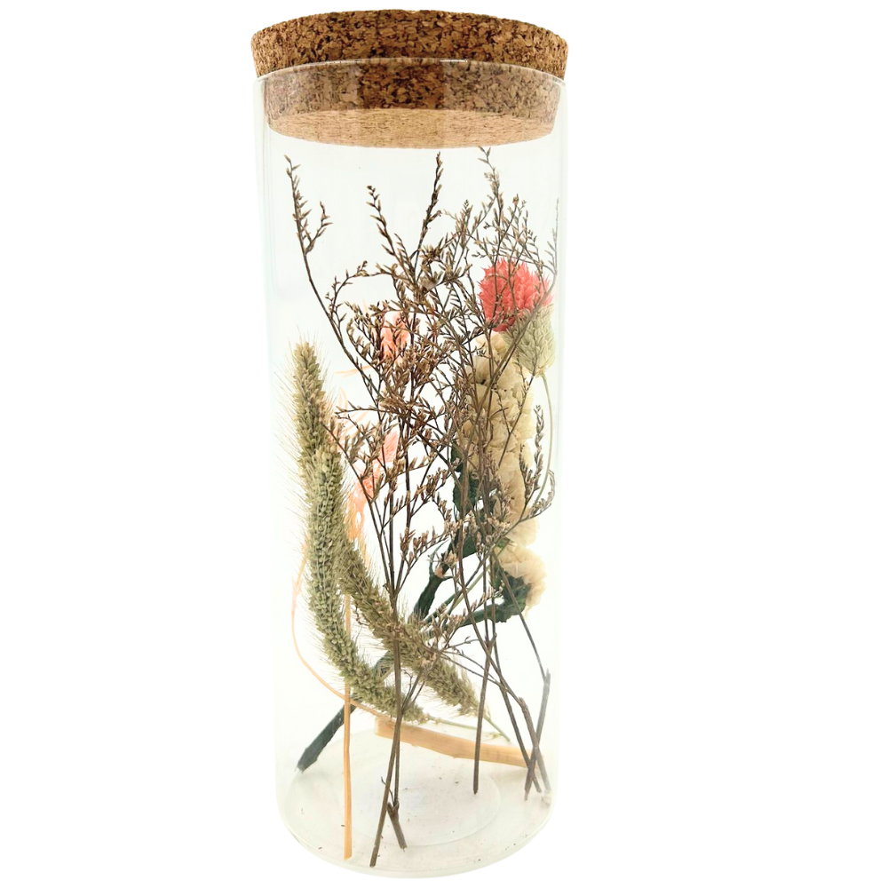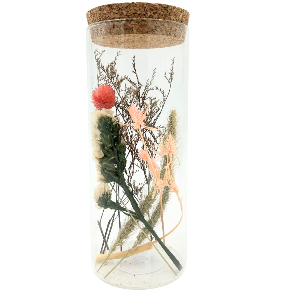 SUSZONA DEKORACJA W SZKLANYM SŁOIKU SUSZONA TRAWA I RÓŻOWY KWIATEK [16524]