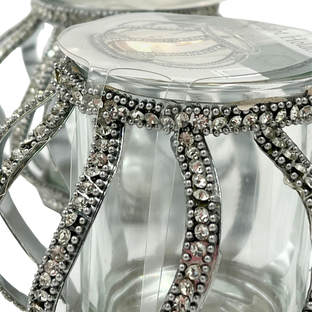 ŚWIECZNIK NA TEALIGHT GLAMOUR SREBRNY Z DIAMENTAMI OZDOBA DEKORACJA MODNE