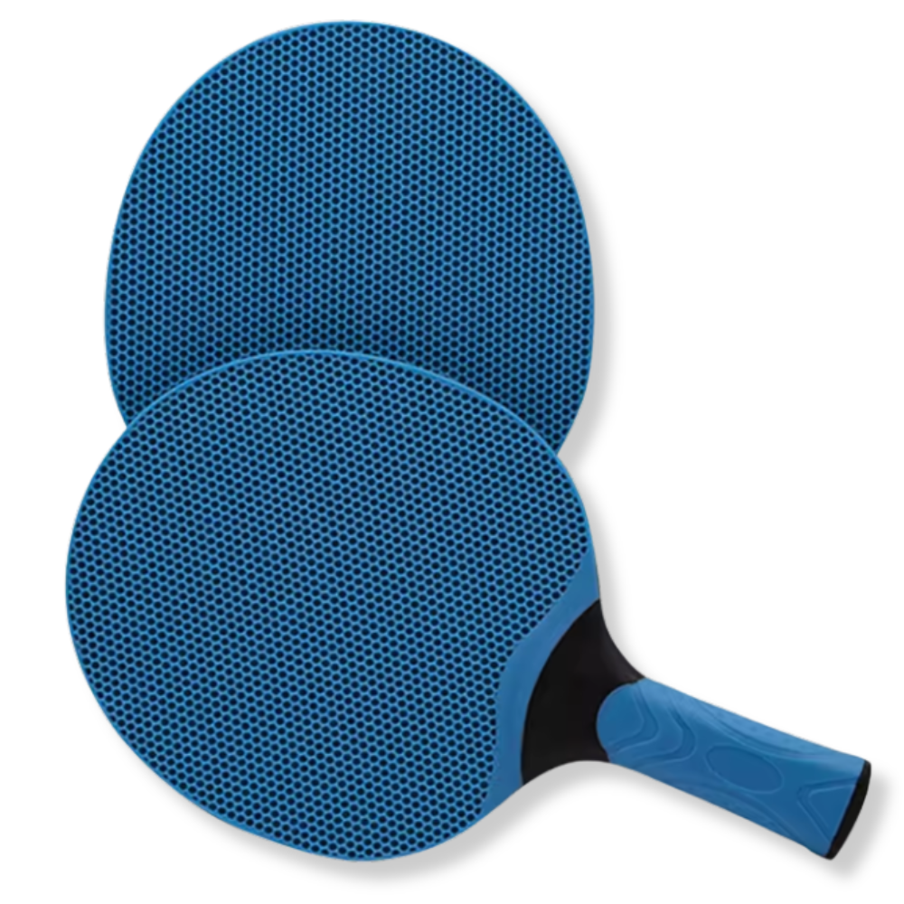 Nadaj grze nowy, świeży styl z naszym designerskim zestawem do tenisa stołowego! Nowoczesne rakietki w kolorze niebieskim z teksturowaną powierzchnią zapewniają nie tylko efektowny wygląd, ale także świetną kontrolę nad piłką. Dzięki rozkładanej siatce Rollnet zamienisz każdy stół w domowy stół do ping-ponga – w kilka sekund i bez użycia narzędzi.